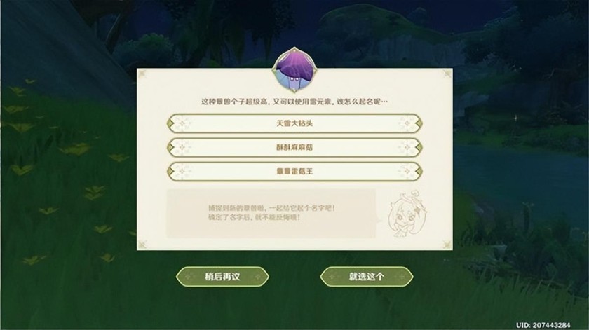 捕捉完成后,可根据派蒙的建议为蕈兽命名