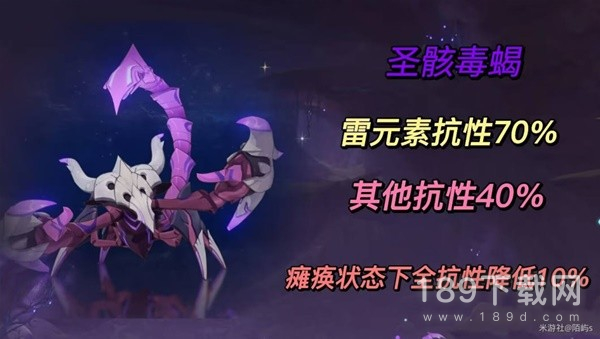 圣骸毒蝎:拥有高达70%的雷元素抗性,其他抗性也有40%。