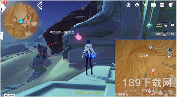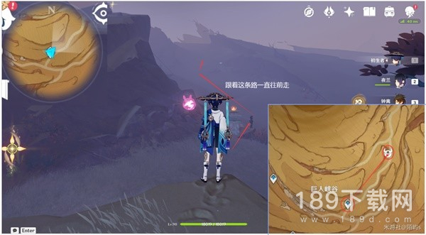 来到巨人峡谷下方的传送点,朝着地图的东方向(右边)偏北(上边)的路一直往前走。