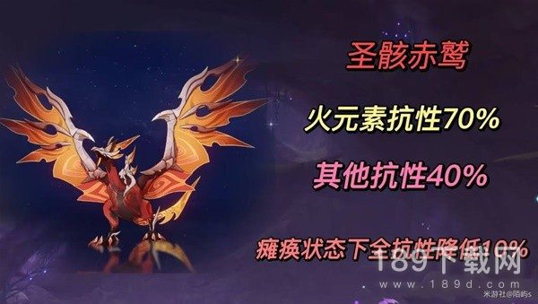 圣骸赤鹫:拥有高达70%的火元素抗性,其他抗性也有40%。