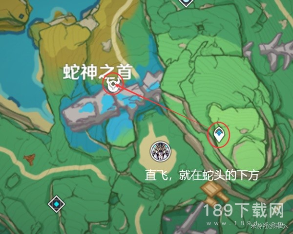来到蛇神之首右下角的传送点,朝着小地图的西方向(左边)看,朝着前方蛇骨头的右边飞,飞一段距离在我们脚底下就能看见圣骸毒蝎。
