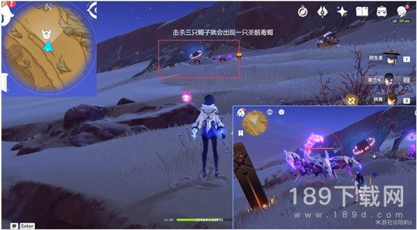 拉上来之后,在小地图北方向(上方)的前面有三只蝎子,击杀三只蝎子就会出现圣骸毒蝎。