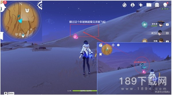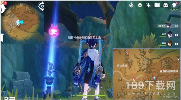 来到往昔的桓那兰那左边的七天神像,朝着小地图的西方向(左边)看,从神像的右侧山体爬上去。