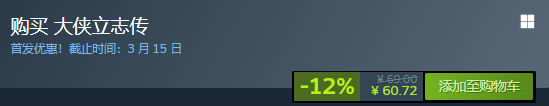 大侠立志传已经推出,价格为69元,喜欢的玩家可以在steam平台购买游玩。