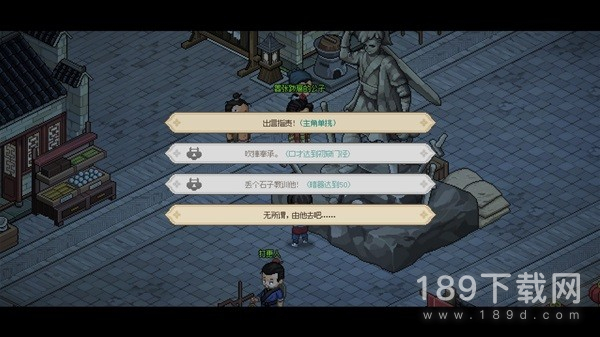 而游戏并没有太刻意“复古”大概也是不错的一点,比如支持随时随地的存档——大约是半年前吧,同样是一个曾备受我期待的国产沙盒像素武侠游戏《带江湖》,就是把老游戏的各种糟心设定原汁原味的继承,让人非常头秃,比如因为存档点的问题是有可能直接造成死档的(杭州下水道进得去出不来)。