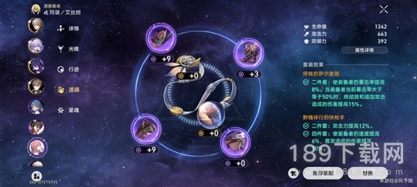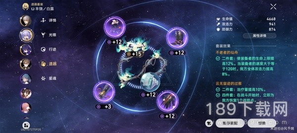 停云推荐套装:主加攻击和能量回复效率增强辅助能力,次加生命值和防御力提高生存能力以不至于被秒。
