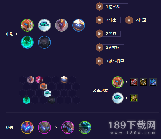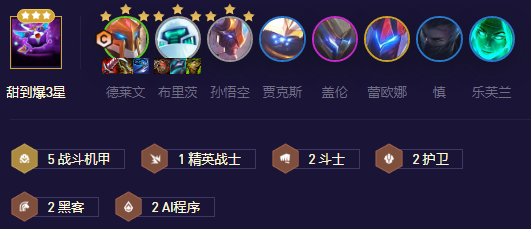 如果有AI转或者机甲转,7人口直接开出4AI或者5机甲那就更好了,有对应转职开对应羁绊,AI差就优先开机甲。都没有就挂点质量牌也行,5费啊,怪兽龙王啥的先用着。一般就挂派克,没有提升点就7级继续慎,武器,猴子,机器的3星更好。有5机甲或者4AI的大提升再升8提升出来再追3星质量,数量少都追不了了才上9。
