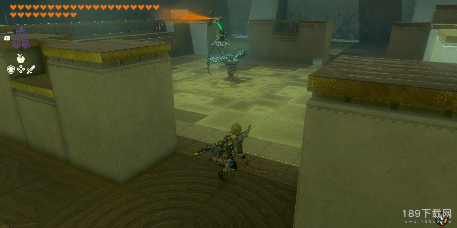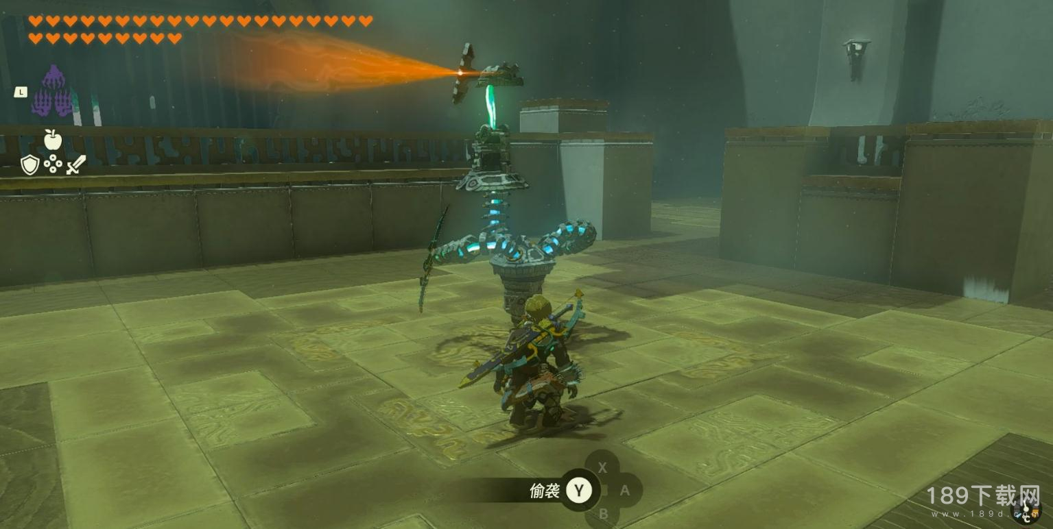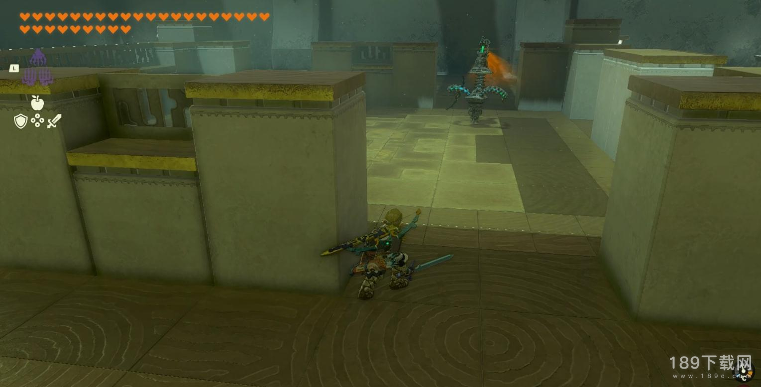 该神庙为潜行教学神庙,我们需要按下左摇杆蹲下,悄悄从背后接近敌人。