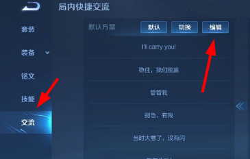 2.然后点击左边菜单栏的【交流】选项,再点击点击上方的编辑;