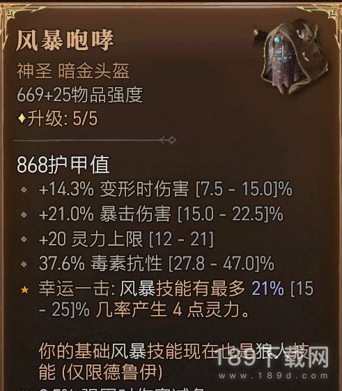 狼人德的进阶版本是风暴狼德,其中风暴头是刚需。衣服没有的话可以用任意防御向威能衣服代替,但伤害会低一些。