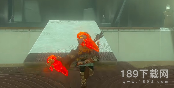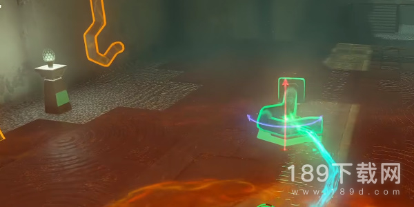 1、进入神庙后一直往里走,找到下图砖块以后使用【究极手】,将它搭在两个平台中央。