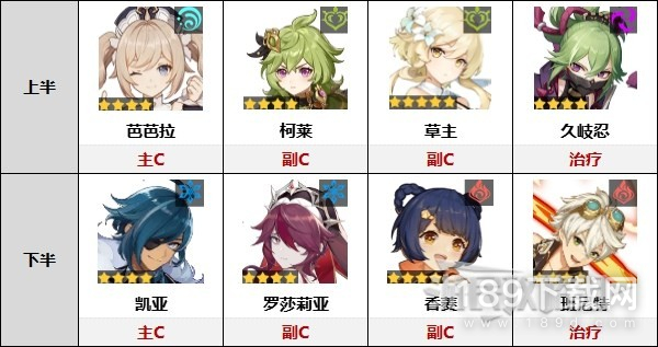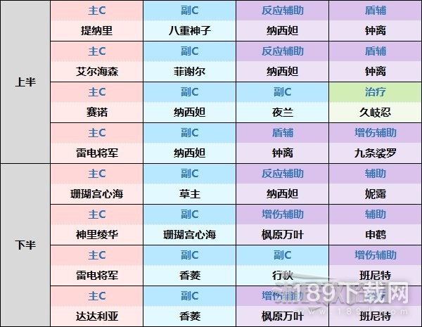下方列出比较容易获得的四星角色阵容,上半超绽放队为降低被圣骸兽秒掉加入了两名治疗角色;下半为提升对群能力选择了四星的融化队,可以根据自身BOX来更换部分角色。