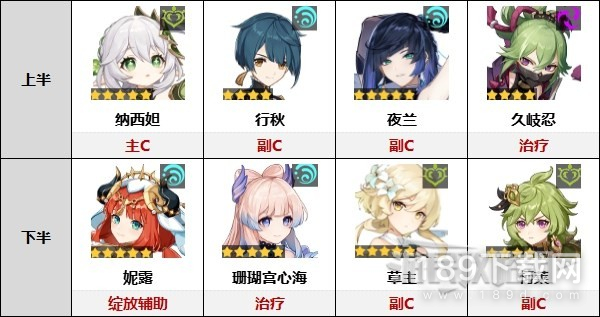 T0:纳西妲、夜兰、班尼特、雷电将军