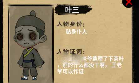 案件凶手选择【叶三】、物证选择【夹竹桃】、人证选择【蔡蓉】和【秀萍】。
