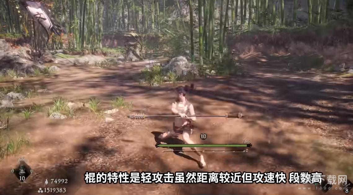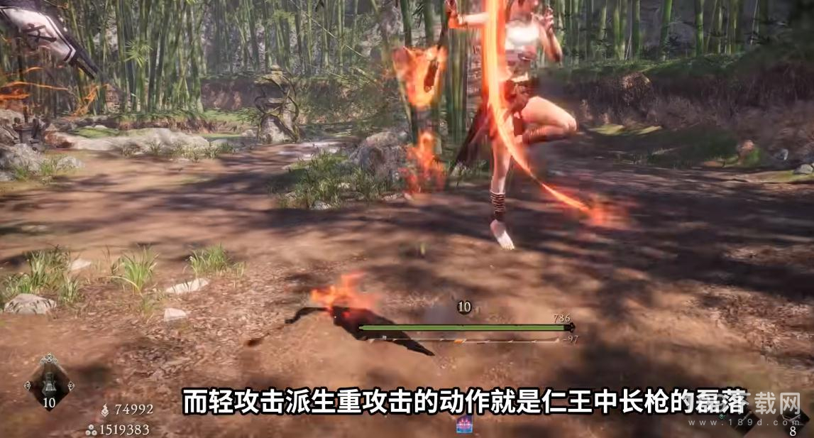 此外棍还有一个特殊之处,轻击接重击派生即为仁王中的磊落,玩过仁王的玩家就知道这是什么意思。动作快的同时对人形强制倒地,非常好用。