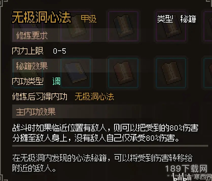 【无极洞心法】道玄宗入门后时候,仁德小于0,会被关进无极洞3天,走到洞里壁画前面,悟性1点自动领悟