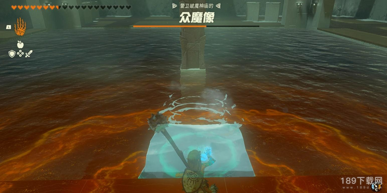 清理完四周的敌人后将冷气果扔入水中制造冰板。
