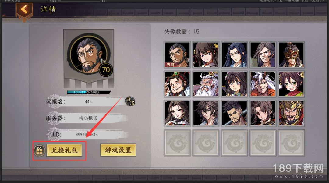 2.在详情界面中,点击“兑换礼包”按钮,打开“礼包码兑换窗口”