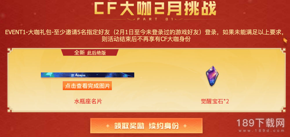 2,2月CF大咖资格续约奖励是:水瓶座名片