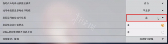 2. 另外设置里有延续上次的自动战斗选项,玩家打开设置,最后一个选项,找到是否沿用自动战斗设置,选择是即可开启。