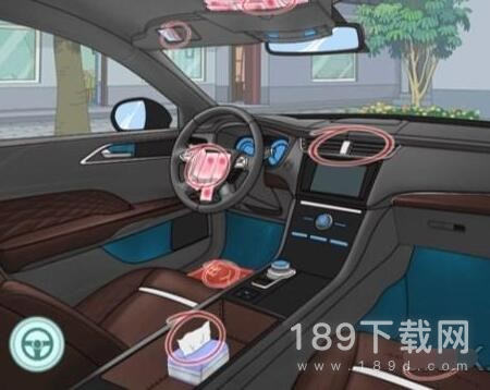 1、文字脑洞找出强哥车上的私房钱,先切换到车内,点击汽车启动按钮。