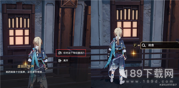 第四步,一段时间后来到下图的位置,与焦急的女性对话。将八音盒交还给她,获得崇高道德的赞许和成就【异乡人】。