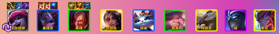 阵容:崔丝塔娜、希维尔、布隆、悠米、提莫、阿兹尔、慎、永恩
