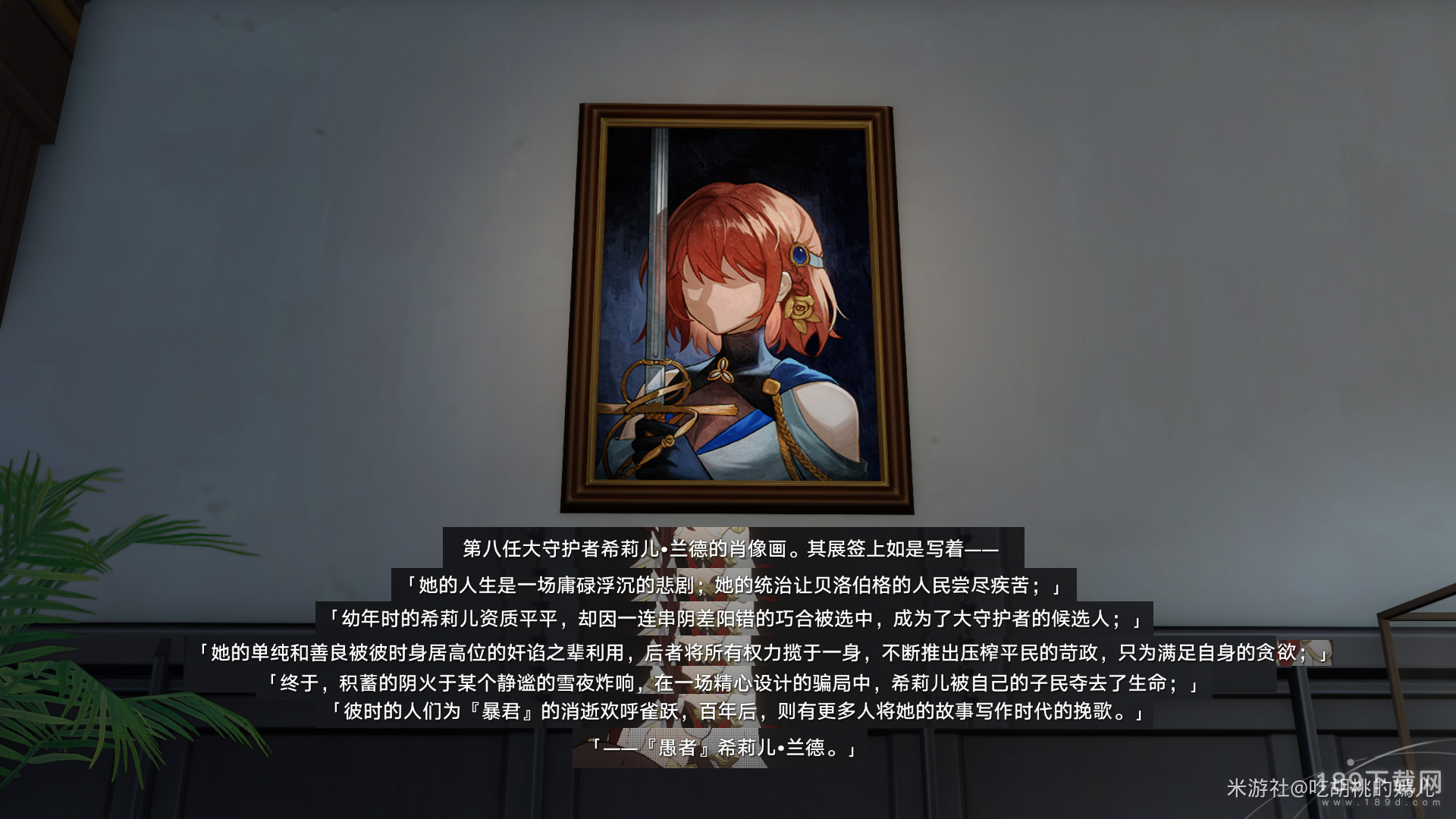 【冬城博物馆】活动渐渐接近尾声,在收集完最后一个藏品【第十八任守护者可可利亚与其女布洛妮娅的肖像画】之后,如果你来到贝洛伯格历史文化博物馆的第四个展区——历史区,那么你会发现那张与【晚安与睡颜】一毛一样的画像旁边,有另一张画像——【希莉儿•兰德】。