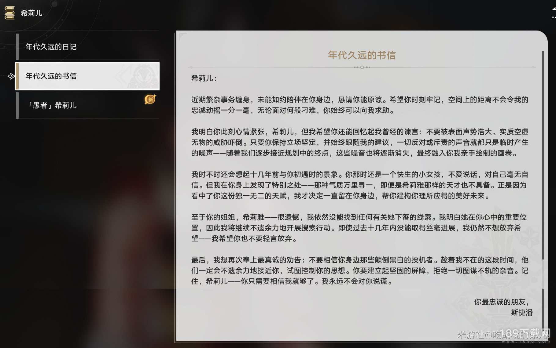解救出她之后,她还会对我们说:我现在也能安心仰仗其他人了…如果让斯捷潘先生知道了这件事,他会开心吗?(就让人很气!)但我们真的不能怪希莉儿,从任务物品【年代久远的日记】/【年代久远的书信】里可以知道,希莉儿为什么会这么信任斯捷潘,PUA啊,她这是被PUA了啊!