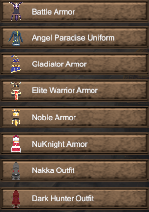 游戏一开始就能获得前8套服装。僵尸等类人怪物也会掉率这些装备。