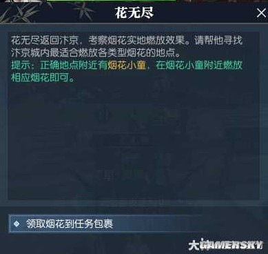 步骤如下图所示,领取的烟花,在任务包裹里