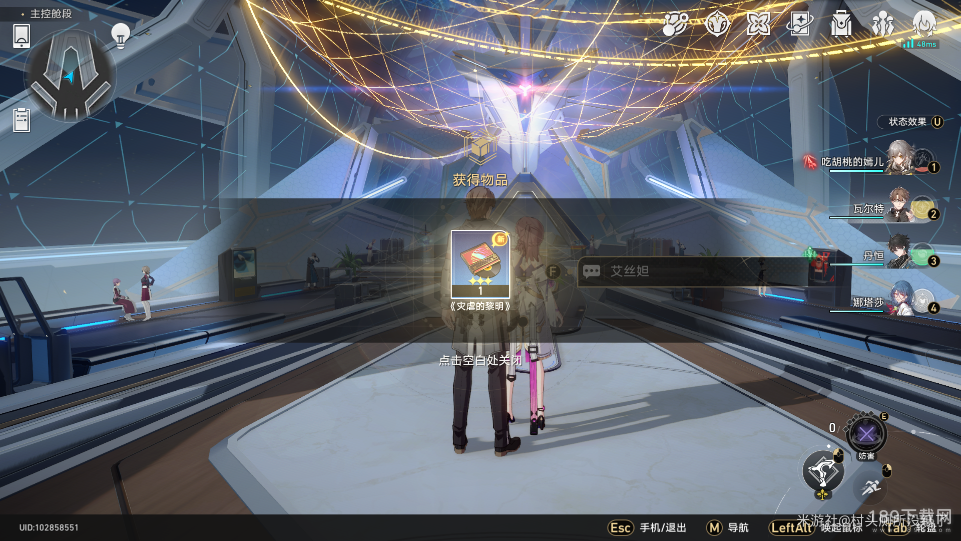 ②如果你已经做完了任务与成就,那么可以直接去【主控舱段】找到艾丝妲直接对话:我找到了你的私人物品。位置如下: