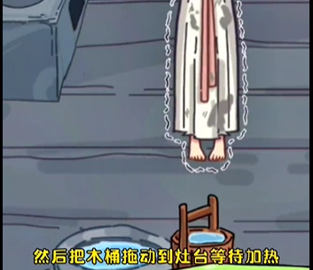 6、把水井砸开用木桶装满井水,放到灶台上加热。