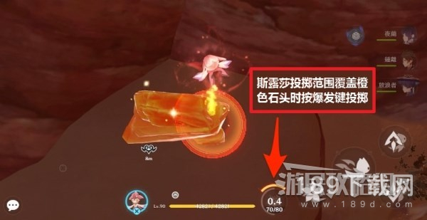 沙漠中会出现一些橙色的石头,名为甘露凝结的晶石,需要使用斯露莎拾取苦离果才能打碎。具体击碎步骤如下图所示。打碎所有晶石可获得的奖励有:普通宝箱×11、奇馈宝箱×1、摩拉堆×5、机关×3,融化15个晶石可以解锁成就【要用原力,斯露莎】。