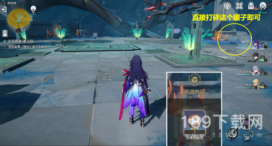 4、继续跟着指引来到第2个位置,打碎黄圈中的罐子就能拿到物品,会被再次传送回初始位置交任务。