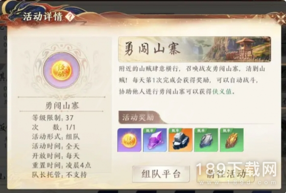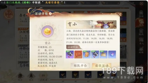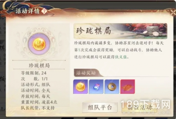 组队参与的限时活动,可获得绝学、宝石等丰厚奖励。