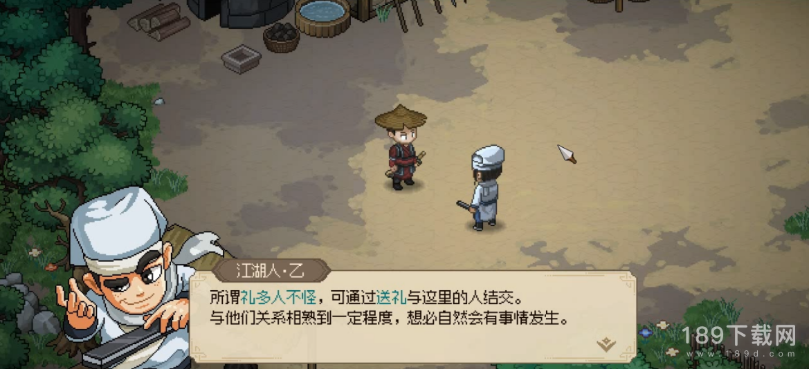 7、每天的时间都很重要,需要充分利用起来,特别是送礼,几乎所有的剧情触发和完成都需要60或者以上的关系度来进行,所以建议从进入无名小村开始每天要都要给NPC送礼,而且每天第一次送礼还会涨“礼节”,他们需求的礼物大多可以在村中的货郎和客栈老板娘那里买到。