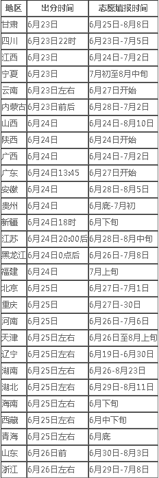 以下是2022年各省高考查分时间和志愿填报时间