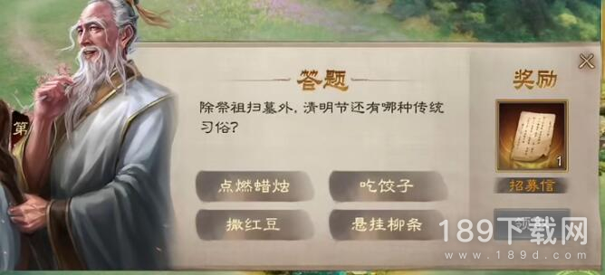 以上就是《三国志战棋版》清明踏青第三天解谜答题方法的详细解析了,本站是专业的游戏攻略平台,旨在为各位玩家带来最需要的游戏攻略,让你快速上手体验新的游戏内容,只要您有不懂的游戏内容,我们都能第一时间帮你解惑,可以收藏本站,及时查看最新攻略。