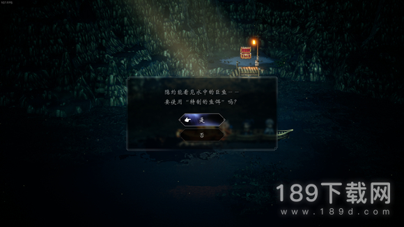 在存档点不上楼梯往右走,接下来是重头戏,钓大鱼!可以先不用鱼饵,先去拿宝箱,宝箱里是好东西等下说