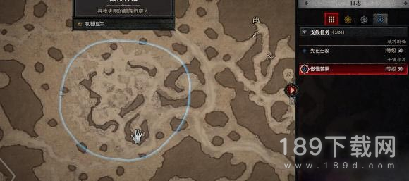 2、接取到任务之后需要来到下图的蓝色圈圈里面的位置寻找失踪的鹤族野蛮人;