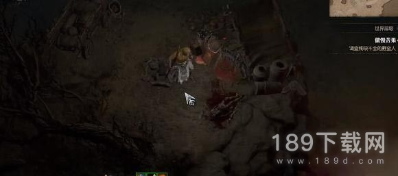 3、到达之后看到残缺不全的野蛮人,靠近即可开始调查,然后身边会有很多的怪,玩家需要击败他们;