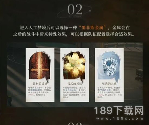 1、进入人工梦境后可以选择一种“里非斯金属”,金属会在 之后的战斗中带来特殊效果,可以根据队伍配置选择合适效果。