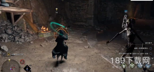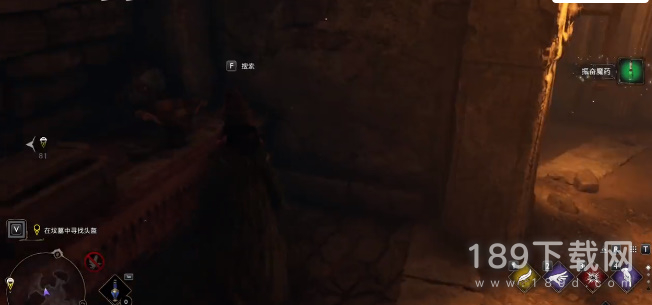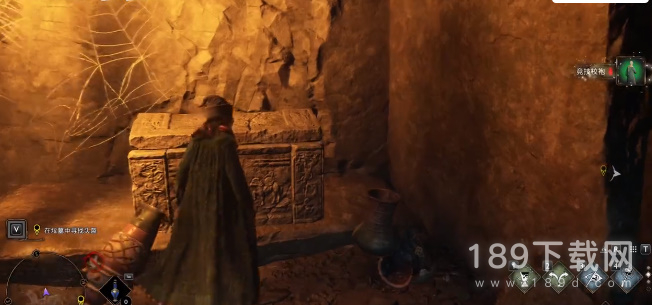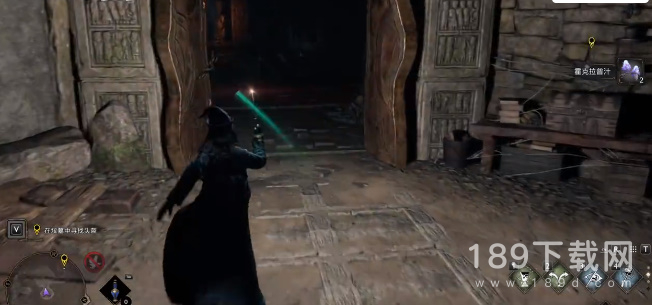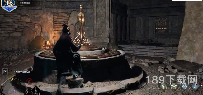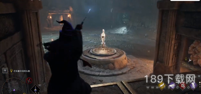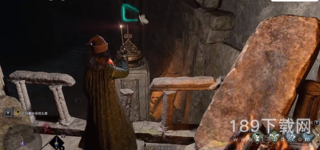9、右边有一扇门使用魔法把门打开,进入之后右边有个物品可以搜索,可以看到上面有个机关装置,使用魔法把它击落,就会开启一条地下通道;