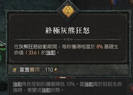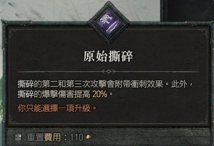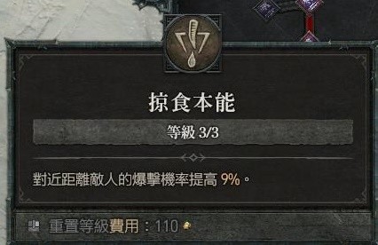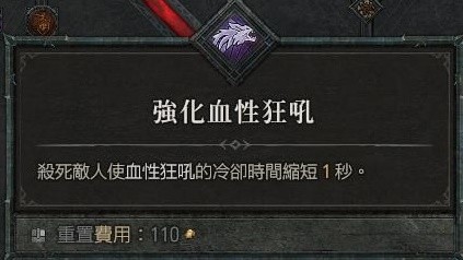 之后防御技能方面,点出血性狂吼(回血用,点出后续的击杀敌人-1CD,这流派遇到群怪,就可以一直狂吼回HP)。