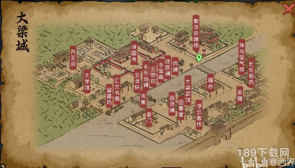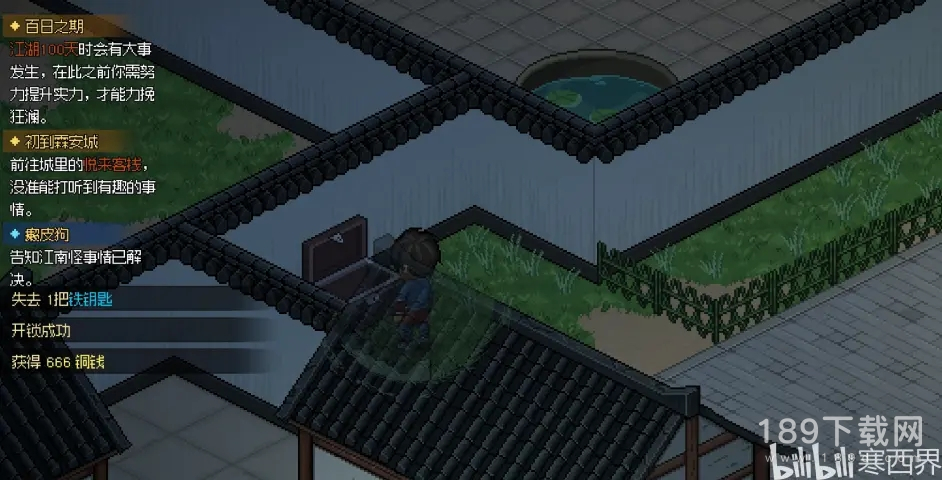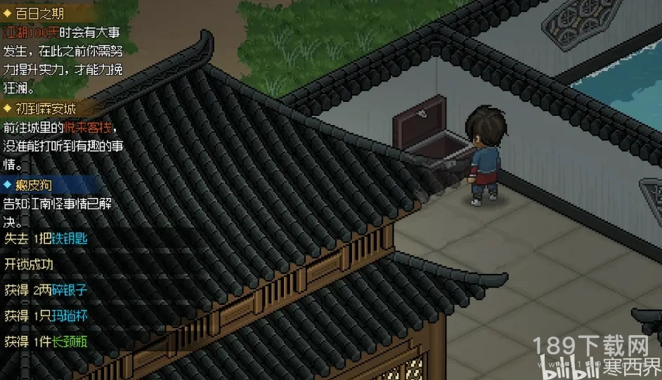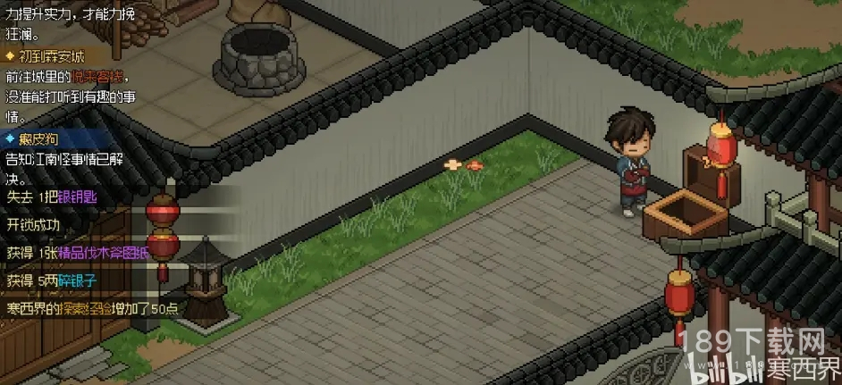 右上角繁花似锦楼左边的巷子里面的箱子,消耗一把银钥匙可以开出来【精品伐木斧图纸】【五两碎银】