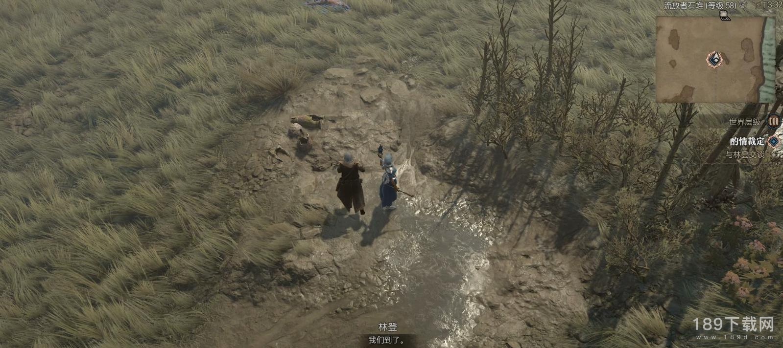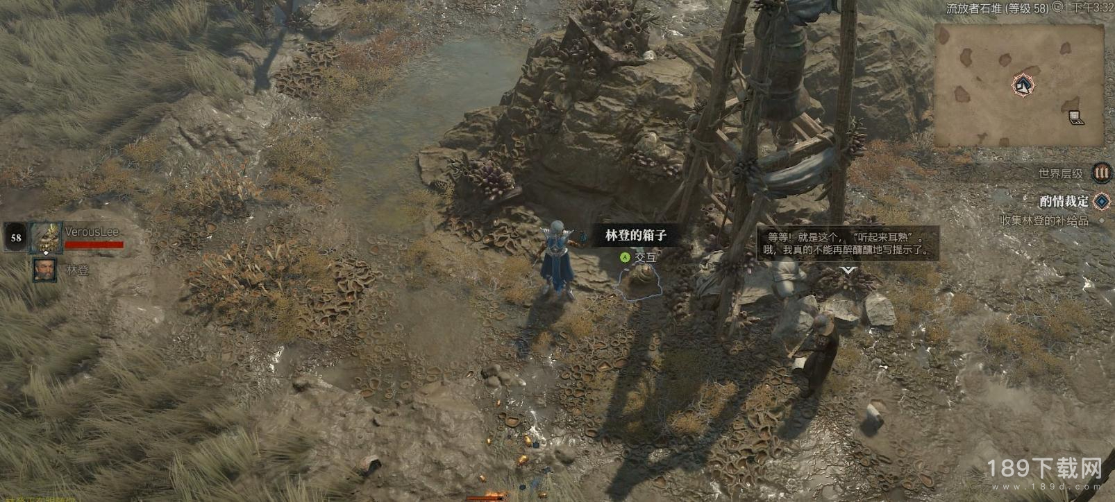 在死水堡外与林登交谈后,和他一起来到藏匿物资的地点。