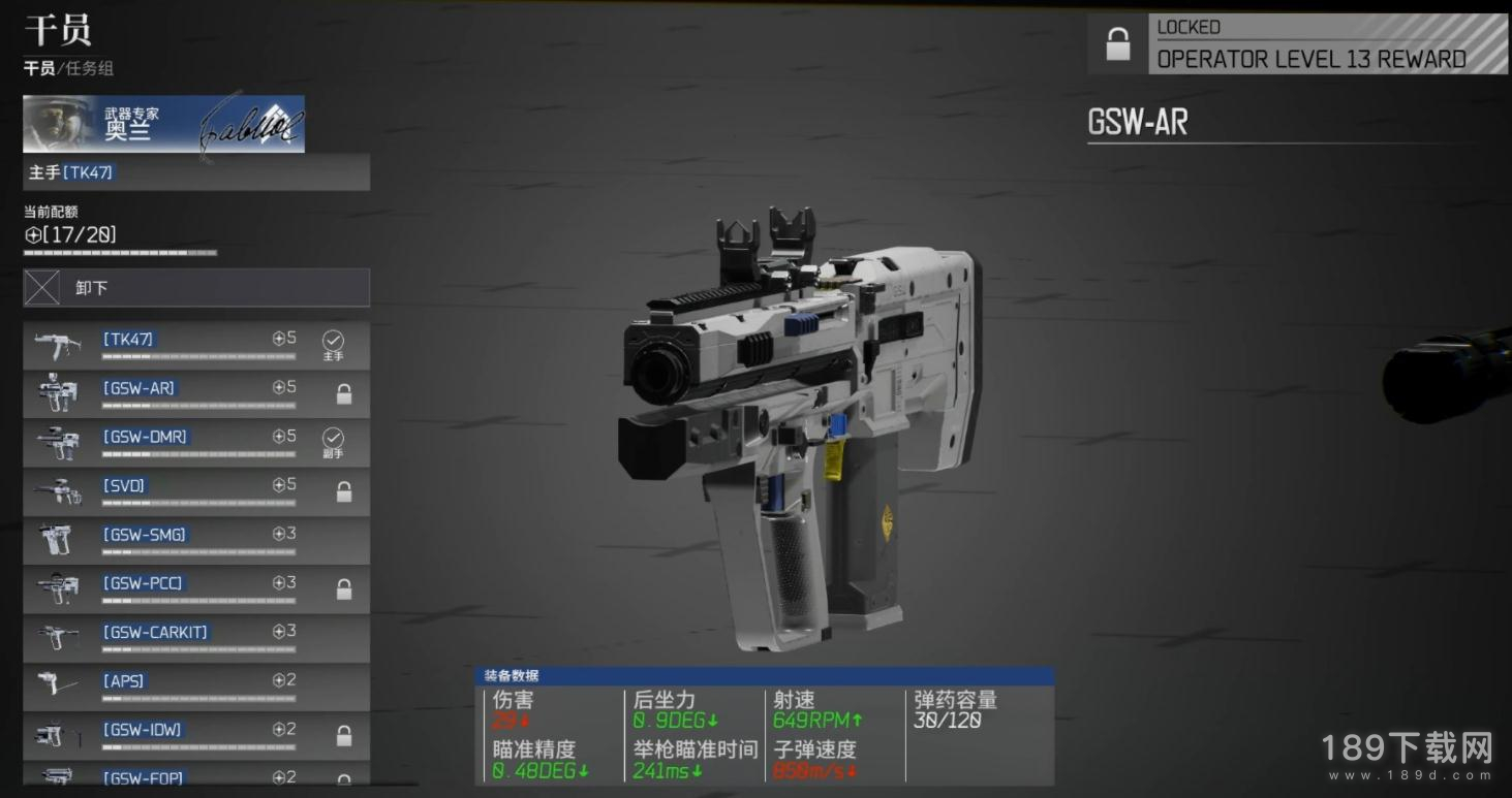 TK47、GSW-AR、GSE-DMR、SVD、GSW-SMG、GSE-PCC、GSW-CARKTI、APS、GSW-IDW、GSW-FOP、GSW-CDP。