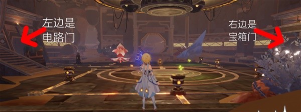 图中左右两边都有铁门拦着,以下简称电路门和宝箱门