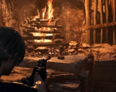 进入电锯姐妹那里外面,木门旁边的火堆旁。